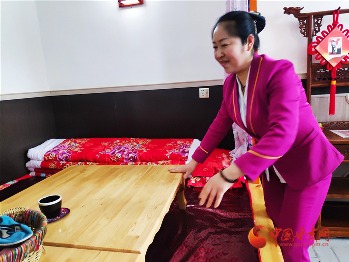 “ 窯洞賓館里的陳設(shè)都是隴中人家的布局,我們還給游客準備了鄉(xiāng)村柴火鍋灶,讓游客體驗鄉(xiāng)間生活,像我們自己做的農(nóng)家掛面游客就很喜歡。”窯洞賓館負責人劉敏介紹華川村的特色民俗體驗項目。