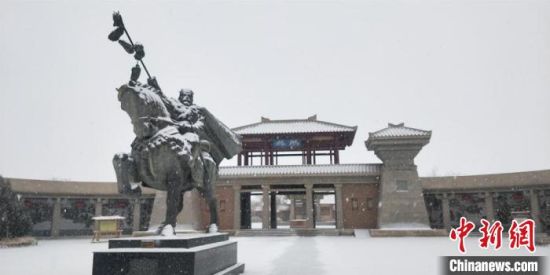 雪落敦煌陽關(guān)景區(qū)。 王斌銀 攝