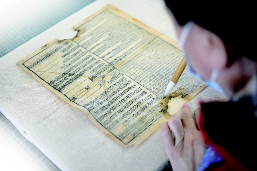 1月5日,記者來(lái)到市圖書(shū)館古籍部,工作人員正在對(duì)破損古籍進(jìn)行全手工修復(fù)。