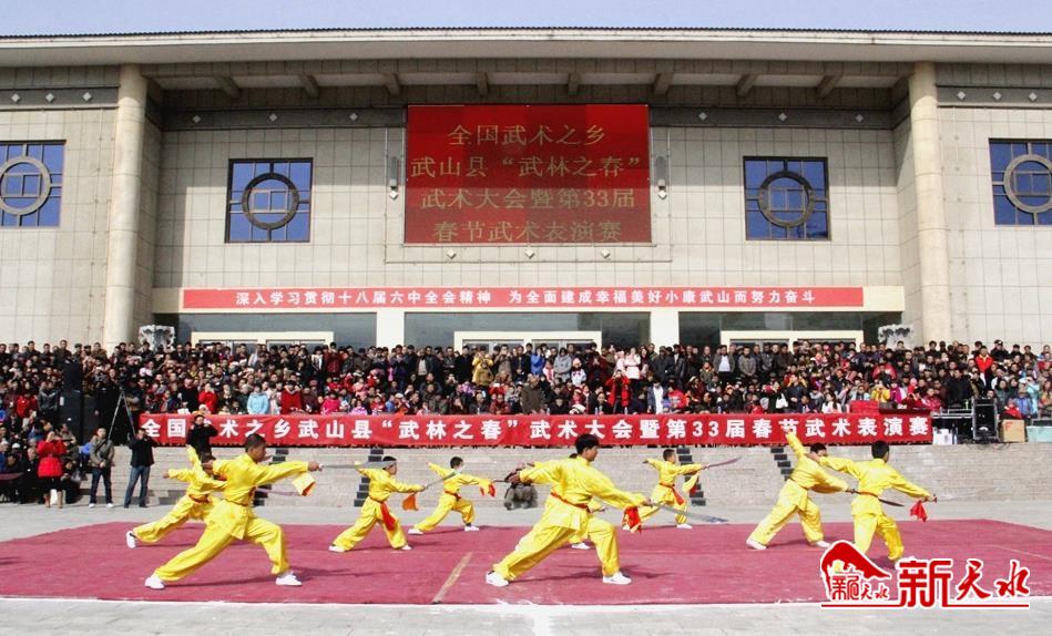 有武——武山是“全國(guó)武術(shù)之鄉(xiāng)”。全縣習(xí)武蔚然成風(fēng),有六合拳、八步轉(zhuǎn)等地方拳和國(guó)家套路、梅花槍、通備拳、硬氣功、太極拳等門(mén)類(lèi),常年習(xí)武人數(shù)達(dá)7萬(wàn)多人,每年正月舉辦全縣武林之春武術(shù)表演大會(huì)。