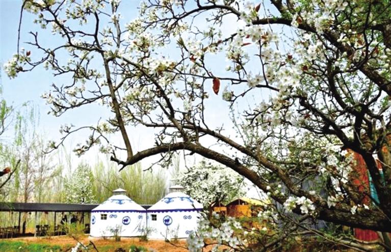 車過東嘴,進入苦水新屯川,312國道兩旁國道兩旁,梨花盛開,如白浪涌岸。從車內所有人的驚呼中,我感到了梨花盛開的魅力 。雪白的梨花,有些地方,長得密不透風。梨花的綻放,宛如一聲令下,整齊中涌動著紛紛攘攘。這涌動是一種心情,能聽得見,能看得見,卻覺不到一點兒喧囂。我們被深深地吸引住了。下車細看,梨花的白,那是一種玉的白色,里面略微泛出淡綠,氣質可比玉蘭。那綠,若有若無,糅合在白中,好似帶點透明。雖然“梨花帶雨”里包含著冷艷、凄美,但靠近了生活底部,在蕪雜的熱鬧中,就產(chǎn)生了放下一切的安靜與清閑。我在這雪白中,感到了爽心悅目,生活在城鎮(zhèn)里的壓抑、喧囂,全被一掃而光。這時,路旁又有兩輛車停了下來,我怕阻礙了交通,趕忙招呼家人上車。車子下了312國道,沿著硬化了的村道,駛向砂灣嘛尼寺。