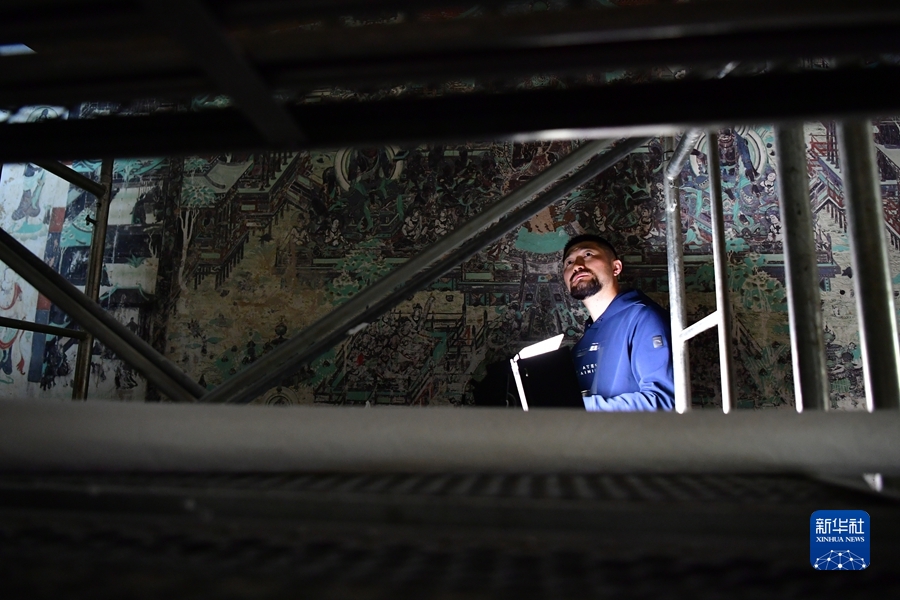 楊金禮今年35歲,他2006年就來到莫高窟,從學徒做起,逐漸成長為敦煌研究院文物保護技術服務中心的一名壁畫修復工作者。楊金禮每天都會和同事來到洞窟內“面壁修復”,通過專業(yè)技術手段解決壁畫產生的起甲、空鼓、酥堿等病害,幫助壁畫對抗時間的流逝。