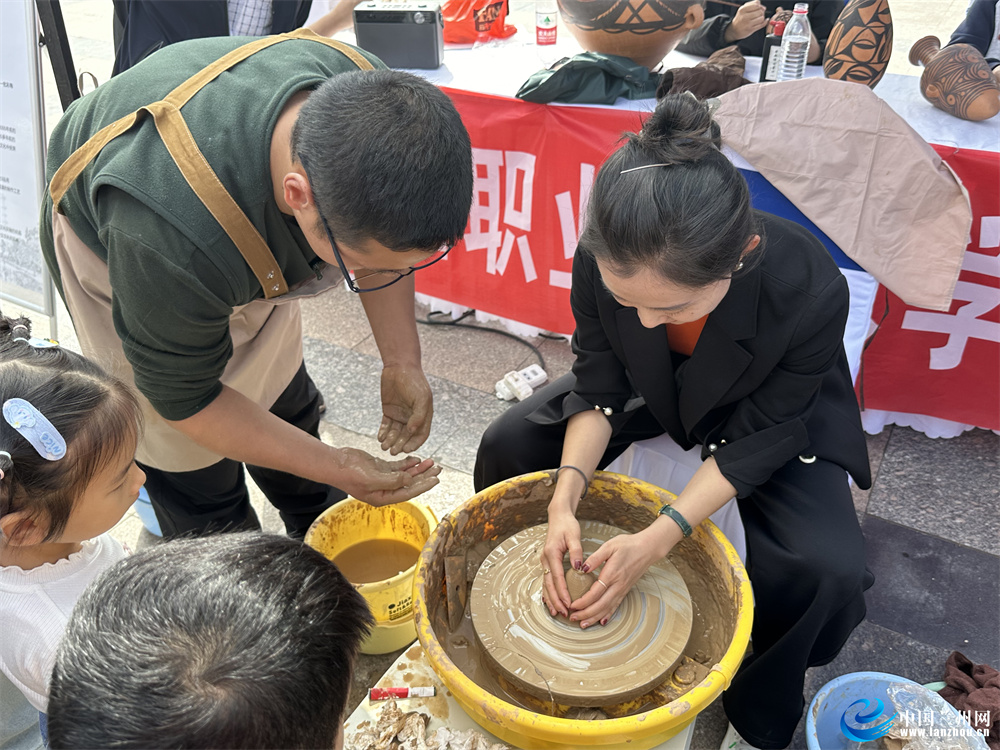當(dāng)日的活動(dòng)中,蘭州職業(yè)技術(shù)學(xué)院非物質(zhì)文化遺產(chǎn)學(xué)院的師生現(xiàn)場(chǎng)展示蘭州刻葫蘆、慶陽剪紙、木版年畫、甘南藏族唐卡、泥板畫、甘肅彩陶、掐絲琺瑯畫等非遺技藝,吸引了很多市民見此情景駐足觀看。其中甘肅彩陶展示尤為引人注目,不少市民上手體驗(yàn),在學(xué)院同學(xué)的幫助下體驗(yàn)非遺文化。市民張女士說:“這是我第一次體驗(yàn)制作甘肅彩陶,讓人印象非常深刻,了解了古人是如何制作彩陶的,也讓我'沉浸式'感受到非遺文化的魅力。”