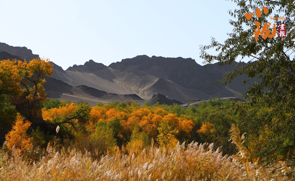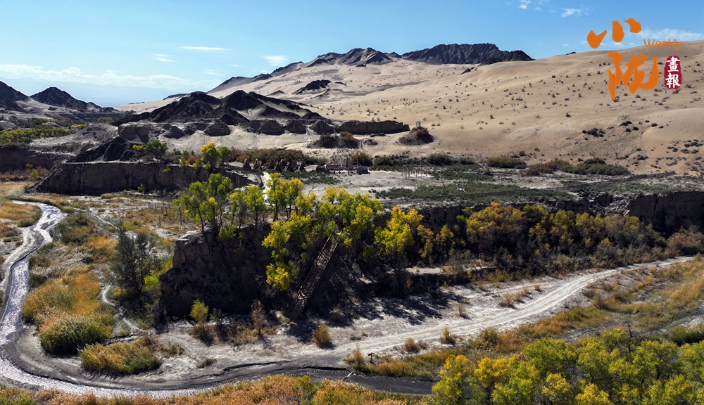 這里山勢(shì)奇特,因溝深線長(zhǎng),猶如峽谷,溝邊自生許多胡楊,被稱為“胡楊峽”。你看,溝邊沙山林立,千年胡楊挺拔,溝內(nèi)溪水清澈纏綿,天然的紅柳、蘆葦、梭梭、沙棗樹(shù)等植被錯(cuò)落有致,共同繪就了一幅秋日畫卷。