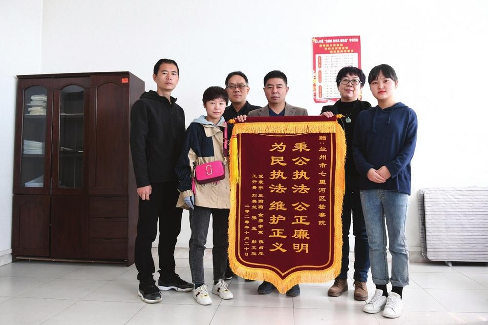 中國甘肅網(wǎng)10月27日訊 據(jù)蘭州晚報報道(記者 許沛潔 文/圖) “今天,我們專程過來感謝各位檢察官。你們維護了公平正義,如果沒有檢察院的依法監(jiān)督,我們這8個家庭就要背負287萬元的債務!”這份感謝來自七里河區(qū)檢察院辦理的一起民事審判監(jiān)督系列案件的多名申請人。10月26日,他們將一面錦旗交到了七里河區(qū)檢察院梁德安副檢察長和第四檢察部負責人手中,表達對辦案檢察官的感謝之情。