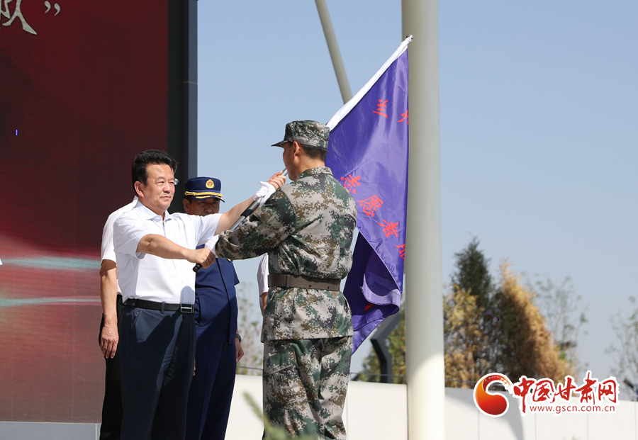 市委常委、政法委書(shū)記魏晉文同志為蘭州高新區(qū)“退役軍人志愿者服務(wù)隊(duì)”授旗
