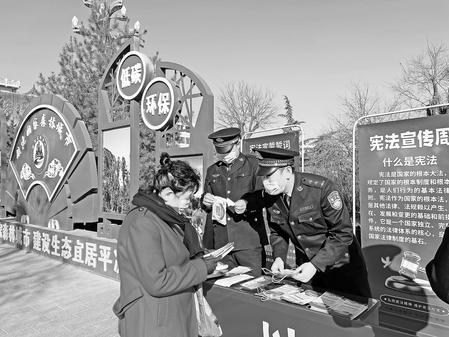 12月3日,定西監(jiān)獄組織青年民警普法宣傳隊來到汽車站社區(qū)開展憲法宣傳進(jìn)社區(qū)活動。隊員向市民發(fā)放憲法手冊和宣傳彩頁,宣傳憲法內(nèi)容,強(qiáng)化市民的法治意識。
