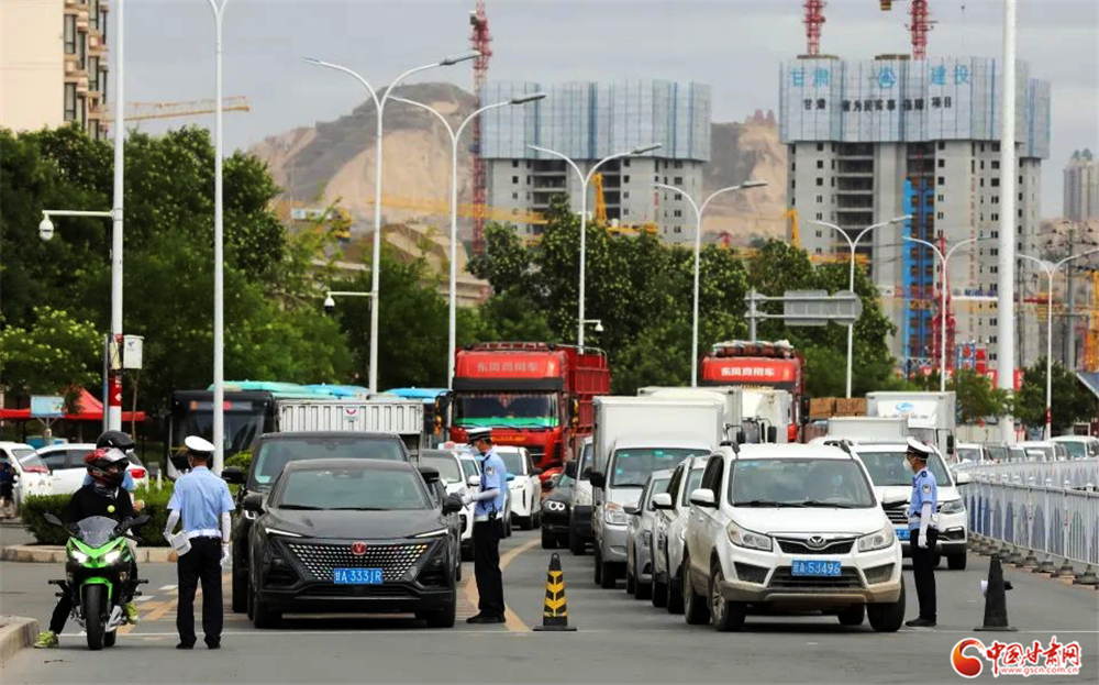 蘭州公安交警嚴(yán)格按照疫主城四區(qū)情防控措施要求,對(duì)非必要入城車輛進(jìn)行查驗(yàn)勸返。楊 釗/攝