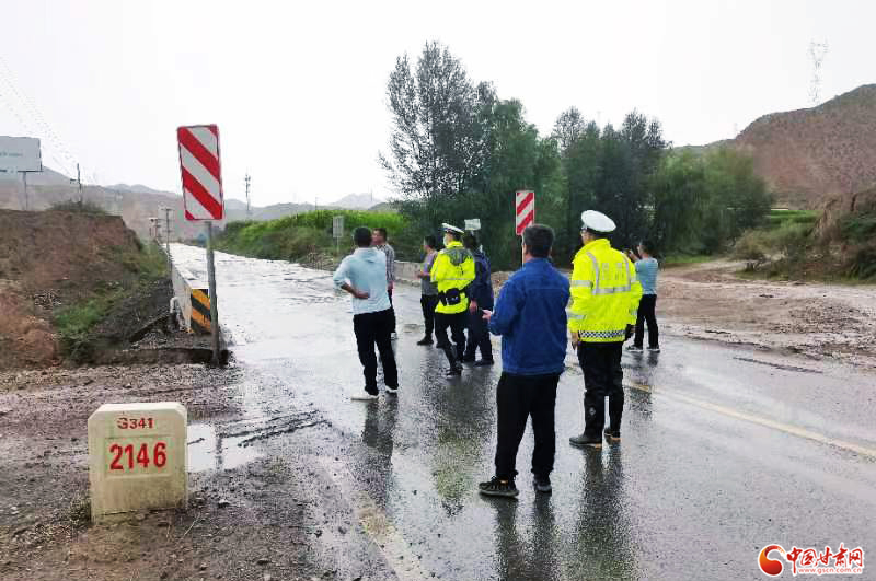 8月4日,永登縣公安局交警大隊(duì)河橋中隊(duì)接到縣局指揮中心強(qiáng)對(duì)流天氣預(yù)警信息后,提前趕往G341線易發(fā)山洪路段開(kāi)展交通疏導(dǎo),所在區(qū)域35人、15輛車安全撤離僅3分鐘后,G341線2174公里處發(fā)生路面坍塌,洪水漫過(guò)堤壩,道路被嚴(yán)重沖毀。
