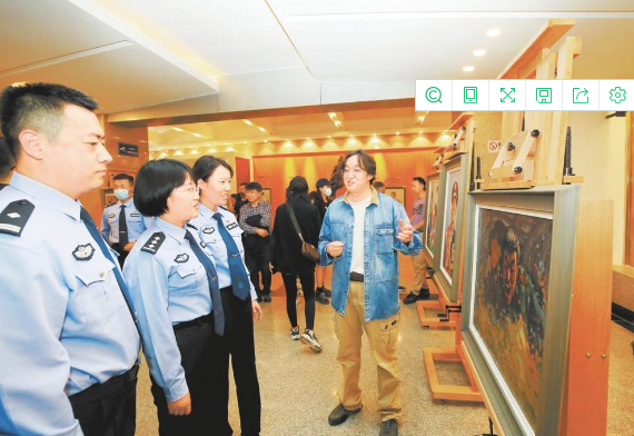 畫(huà)像作者向民警講述作品創(chuàng)作過(guò)程中如何選題、明確作品主題以及表現(xiàn)形式