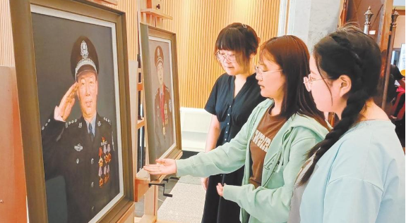 學(xué)生參觀(guān)英模畫(huà)像展覽