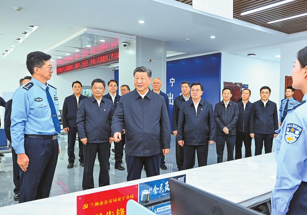 9月10日至13日,中共中央總書記、國(guó)家主席、中央軍委主席習(xí)近平在甘肅考察。這是11日下午,習(xí)近平在蘭州市公安局安寧分局劉家堡派出所考察。新華社記者燕雁