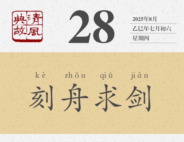 東西遺失了,沒有找回來,雖然很遺憾,但并沒有人覺得可笑。楚人劍掉到了江里,同樣沒有找到劍,但為什么我們不覺得遺憾,反而覺得可笑呢?那個人的劍掉到江里了,那個人的腦子是不是也掉到江里了呢?后人即以“刻舟求劍”為典,比喻墨守成規(guī),不知變通,處理事情的方法、解決問題的辦法不能隨著形勢的變化而變化,不能隨著事物的發(fā)展而發(fā)展。也用來形容事過境遷,追悔莫及。南宋高僧宗杲《頌古》其四十曰:“出門握手話分攜,古路迢迢去莫追。卻笑波心遺劍者,區(qū)區(qū)空記刻舟時。”黃庭堅詩《追憶余泊舟西江事次韻》:“老大無機如漢陰,白鳥不去相知深。往事刻舟求墜劍,懷人揮淚著亡簪。”其中的“空記刻舟時”“刻舟求墜劍”,都是對“刻舟求劍”的化用。