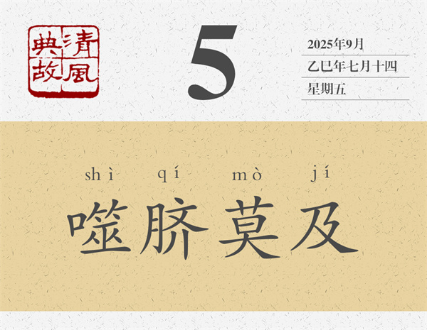 楊伯峻認(rèn)為,“噬齊”是當(dāng)時的俗語。齊,通“臍”,即肚臍。“噬齊”即用嘴去咬自己的肚臍,意謂夠不著,咬不到。后世則以“噬臍”或“噬臍莫及”為典,比喻再后悔也來不及了。葉夢得詩《懷西山》:“平生幾濡首,末路多噬臍。”
