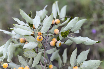 簡介:君遷子,落葉喬木。葉橢圓形,花淡黃色?;ㄆ?-5月,果期9-10月。成熟果實可生食或釀酒、制糖、制醋。果實藥用,可止消渴,去煩熱。木材質(zhì)硬、耐磨損,可做紡織木梭、雕刻、小用具等,且材色淡褐、紋理美麗,可做精美家具和文具。實生苗常作柿樹的砧木。