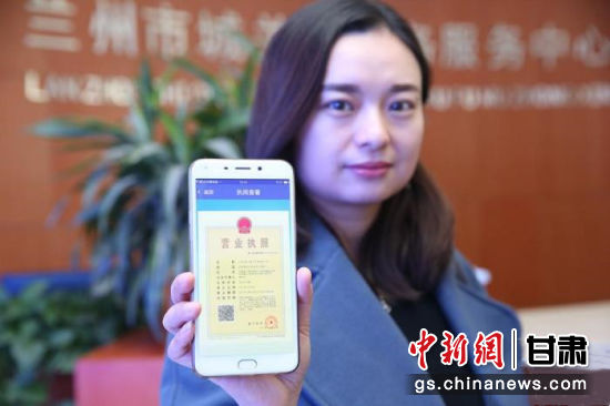 圖為蘭州一家公司代表展示申領(lǐng)的電子營業(yè)執(zhí)照。(資料圖) 史靜靜 攝