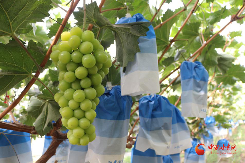 陽光染就青璃串,秋露凝成琥珀香。近日,高臺縣南華鎮(zhèn)智號村“陽光玫瑰”葡萄陸續(xù)成熟,爭“鮮”上市。走進(jìn)葡萄種植大棚,藍(lán)白漸變的套袋既藏著果實悄悄蛻變的痕跡,也為“陽光玫瑰”附上了一層朦朧的神秘感,讓人站在葡萄藤下忍不住想湊近,看看袋里正醞釀著怎樣的青綠與香甜。
