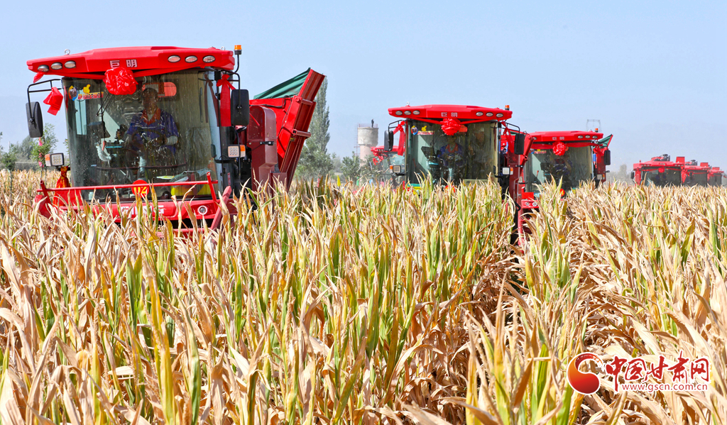 9月8日,在張掖市甘州區(qū)堿灘鎮(zhèn)普家莊村千畝玉米制種基地里,十八臺大型制種玉米收獲機在種植基地快速采收,充分展示了現(xiàn)代化農(nóng)業(yè)機械助力制種玉米升級的魅力。