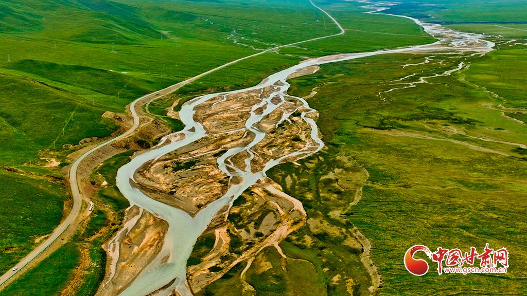 8月25日,初秋時節(jié),中國第二大內陸河黑河上游,從空中俯瞰,水流在河道中蜿蜒曲折順河而下,仿佛一條游動的青龍,搖頭擺尾曲折前行。