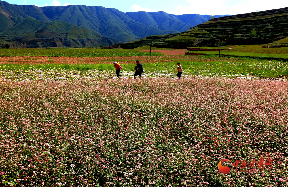 初秋時(shí)節(jié),會(huì)寧柴家門鎮(zhèn)樊郭村正值盛花期的百畝蕎麥競(jìng)相綻放,層層花浪隨風(fēng)起伏,清甜芬芳縈繞間蜂飛蝶舞,繪就一幅生機(jī)盎然的秋日畫卷。這片絢麗的梯田花海,不僅是當(dāng)?shù)?ldquo;以秋補(bǔ)夏、以復(fù)種促增收”戰(zhàn)略的生動(dòng)注腳,更是土地孕育豐收的希望詩篇。