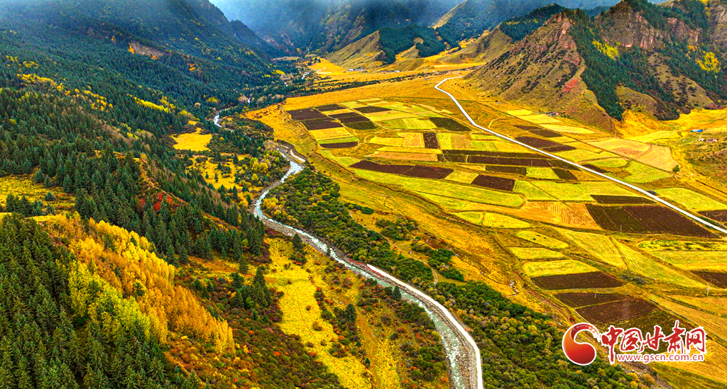 金秋十月,祁連山國家公園迎來最絢爛的季節(jié)。雪峰映照著斑斕林海,山霧繚繞其間,原始森林、雪山、草甸、霜葉構成垂直景觀帶。雪白、金黃、深紅與湛藍交相輝映,黃綠為底,紅金點染,宛如一幅渾然天成的油畫。
