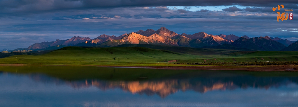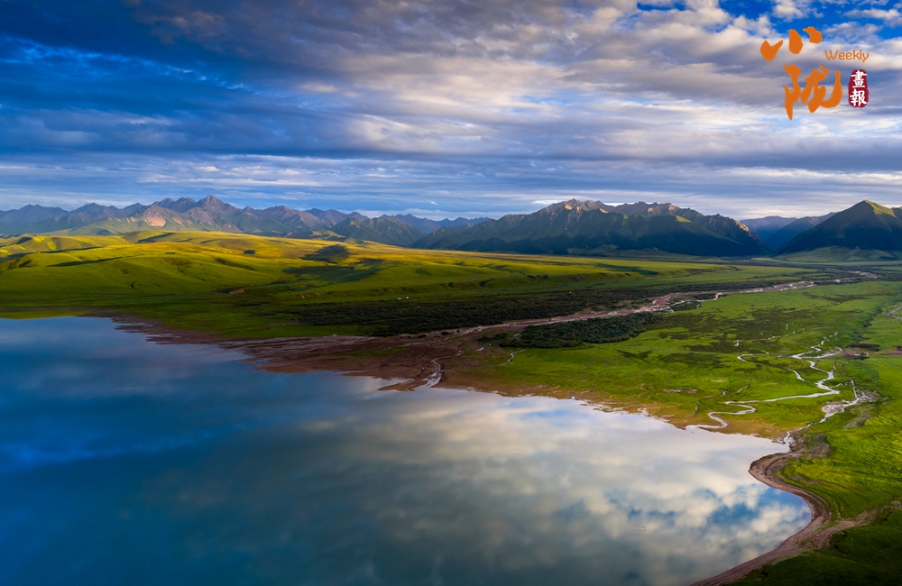 站在祁連山主峰冷龍嶺北坡瞭望,廣袤無(wú)垠的草原一片金黃,遠(yuǎn)方是連綿的祁連山,眼前是鸞鳥湖,遠(yuǎn)山近水,充滿了秋色的誘惑。