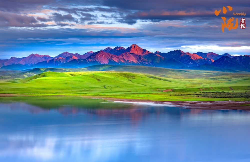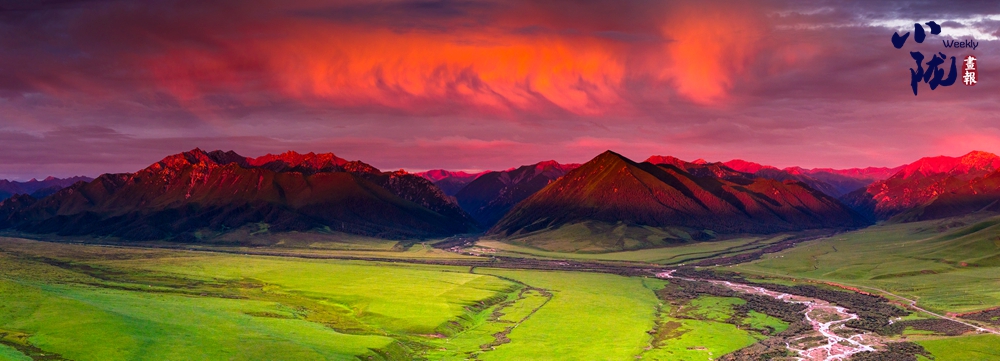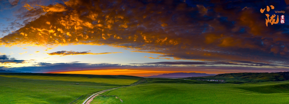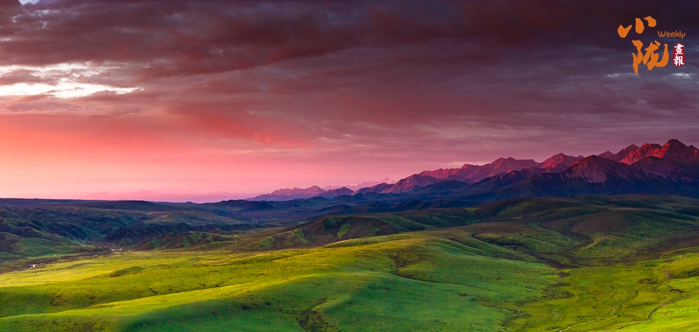 夕陽(yáng)西下的時(shí)候,晚霞將西邊的天空映得通紅,云朵如火焰般燃燒。而此時(shí),五彩的山巒與綠色的草原相互映襯,形成鮮明對(duì)比,十分壯觀和漂亮。