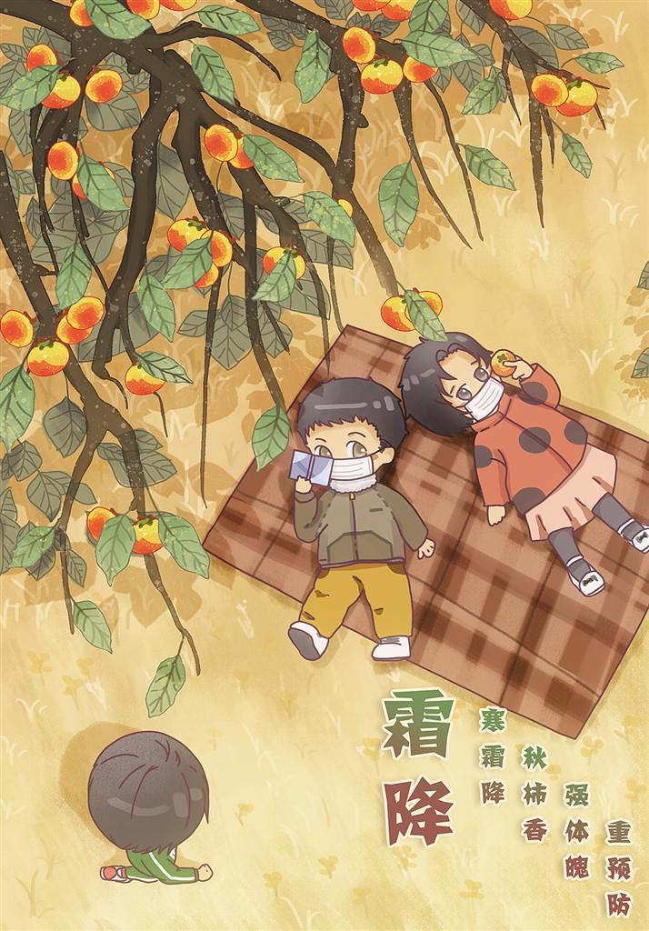 “對(duì)于在北方林馬厲兵的冷氣團(tuán)而言,霜降被列為屬于秋季的節(jié)氣,它的內(nèi)心或許有著各種不服。”他說:“霜降時(shí)節(jié)在北方,要么是已先期入冬,要么是秋與冬在研究交接工作。在華南等地,卻仍是悠悠長夏。”