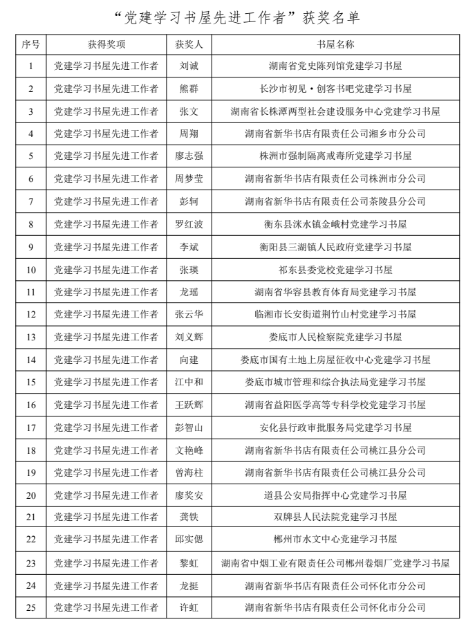 近日,為不斷鞏固拓展黨史學習教育成果,扎實推動黨史學習教育常態(tài)化長效化,集中展示湖南省“黨建學習書屋”建設(shè)成效,樹立學習標桿,引領(lǐng)黨建文化陣地建設(shè),由湖南新華書店集團、湖南紅網(wǎng)新媒體集團、新華網(wǎng)悅讀頻道共同舉辦的2021年度湖南“最美黨建學習書屋”和“黨建學習書屋先進工作者”評選結(jié)果出爐。經(jīng)過自主申報、初選、網(wǎng)絡(luò)票選、專業(yè)評審等4個環(huán)節(jié),本次活動共評選出13家“最美黨建學習書屋”、13家“黨建學習書屋先鋒單位”、25名“黨建學習書屋先進工作者”。