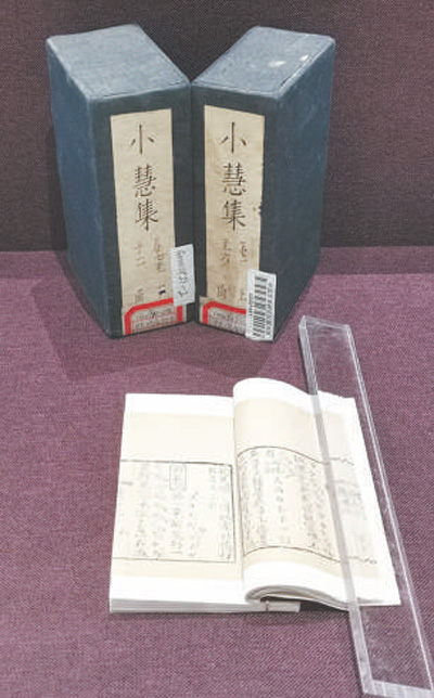 中國非物質(zhì)文化遺產(chǎn)館展出的清代刻本《小慧集》,其中用工尺譜記錄的“鮮花調(diào)”是民歌《茉莉花》最早的曲譜之一。 記者 周飛亞攝