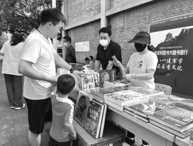 中關(guān)村圖書大廈攜手西郊機(jī)場(chǎng)居民委員會(huì)走進(jìn)西郊機(jī)場(chǎng)家屬區(qū),開展“八一建軍節(jié) 品書香文化”主題宣傳活動(dòng)。