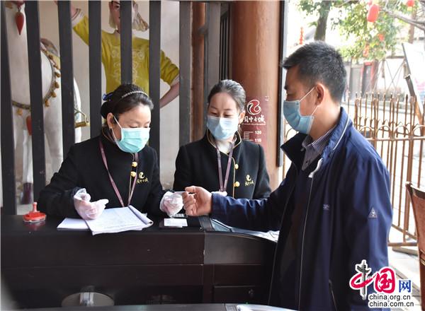 閬中古城景點(diǎn)因新冠肺炎疫情關(guān)閉營(yíng)業(yè)53天后,3月18日上午春日暖陽(yáng),再現(xiàn)熙熙攘攘,戴著口罩的市民和游客開(kāi)始多了起來(lái),關(guān)閉很久的商鋪又重新開(kāi)張,很久沒(méi)有出現(xiàn)的觀光電瓶車又活躍在古城大街小巷。從上午 9:00開(kāi)始, 閬中古城景區(qū)漢桓侯祠、中天樓、文廟、川北道署、貢院、華光樓6個(gè)景點(diǎn)有序恢復(fù)開(kāi)放,而不同的是這次參觀景點(diǎn)增加了實(shí)名登記和體溫檢測(cè)等程序,但是閬中市旅游界人士欣喜的說(shuō):閬中古城A級(jí)景點(diǎn)全部恢復(fù)開(kāi)放,閬中古城旅游滿血復(fù)活,旅游人的春天來(lái)了!