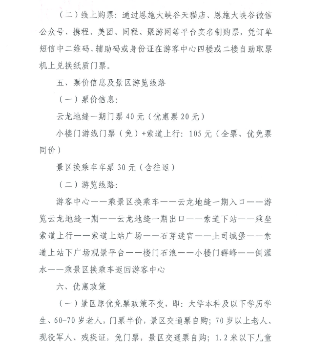 優(yōu)惠政策方面,景區(qū)原優(yōu)免票政策不變;與此同時(shí),全國(guó)醫(yī)護(hù)人員、援鄂醫(yī)療隊(duì)員、天津援助恩施醫(yī)療隊(duì)員按湖北省文旅廳、恩施市文旅局相關(guān)優(yōu)惠政策(憑有效證件)免門(mén)票;天津市民憑有效證件享受門(mén)票半價(jià)。