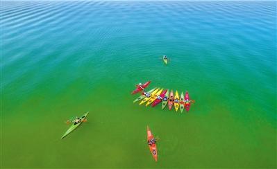 皮劃艇隊(duì)運(yùn)動(dòng)員在劉家峽水庫國家亞高原水上訓(xùn)練基地訓(xùn)練