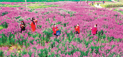 安徽六安市民在做好防護(hù)的基礎(chǔ)上,自駕車(chē)輛,來(lái)到獨(dú)山鎮(zhèn)抹茶特色小鎮(zhèn),觀花賞景。 陳力 攝