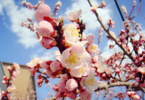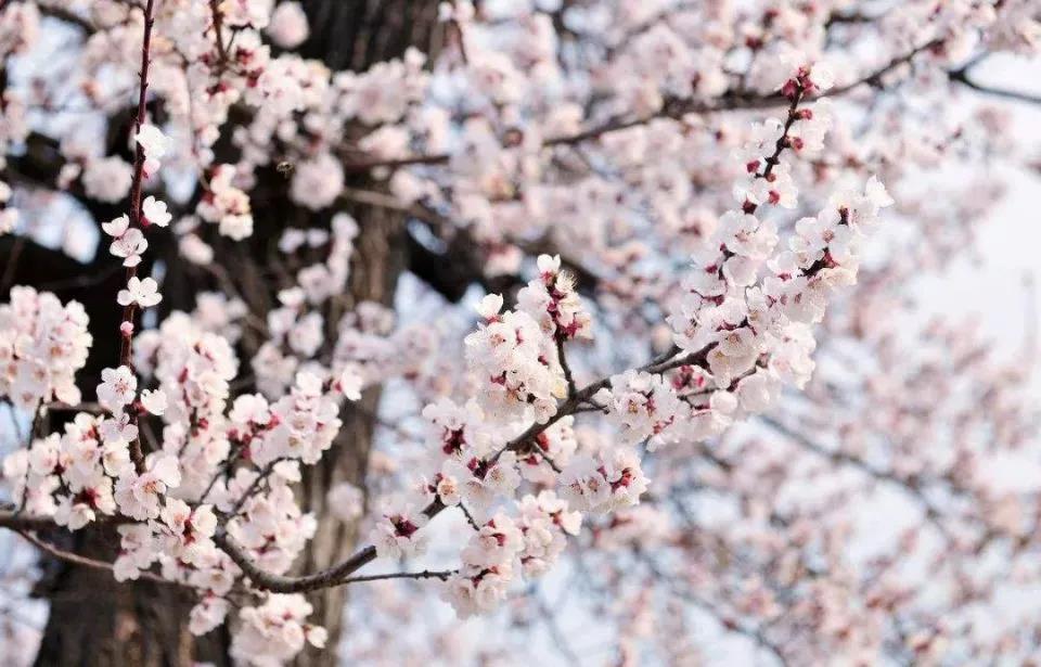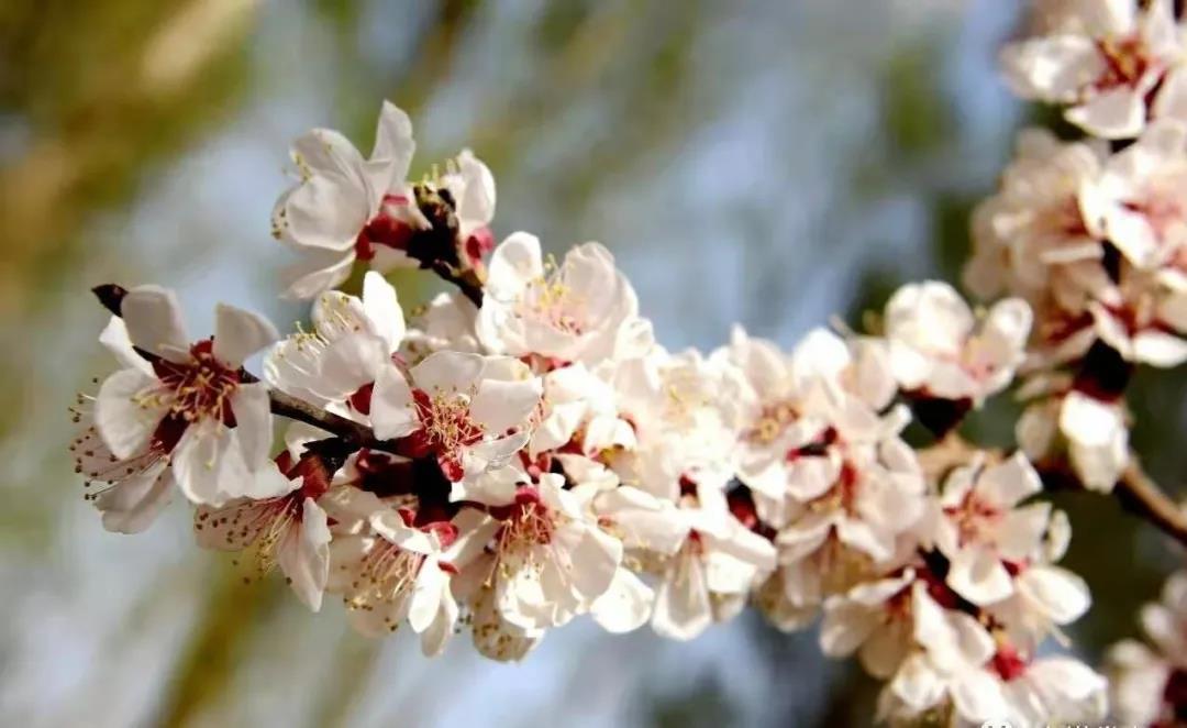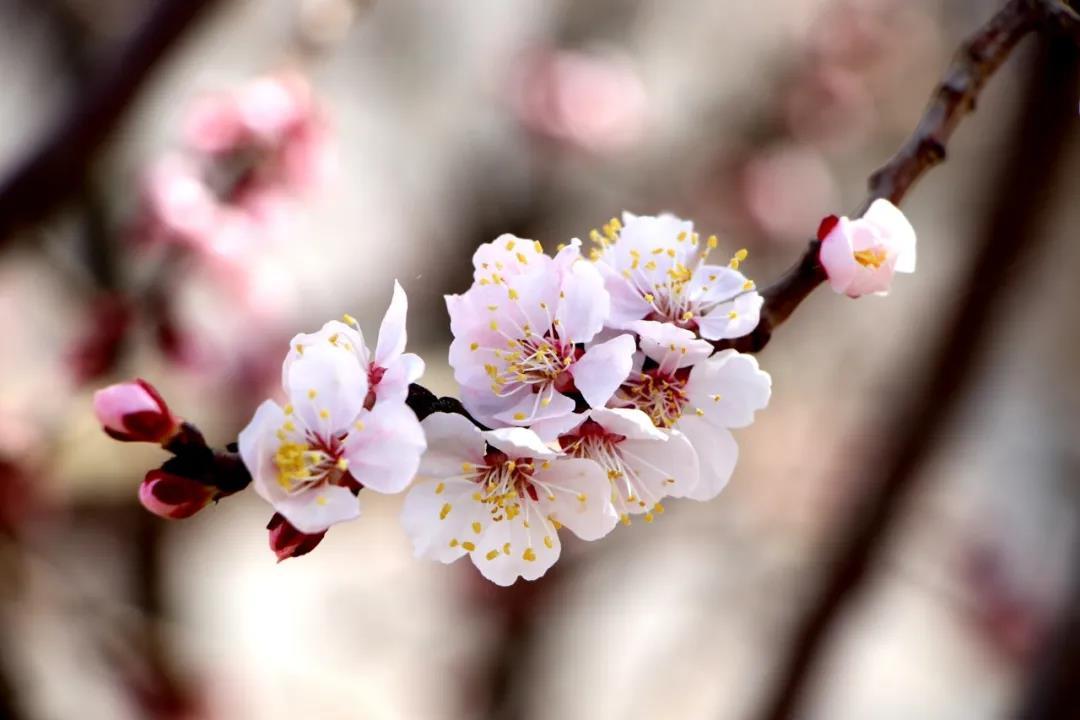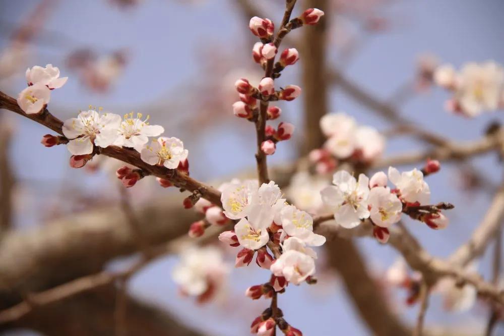 沐浴在明媚春光下,紅的、粉的、白的……競相綻放,遠(yuǎn)遠(yuǎn)望去,一幅十里杏花畫卷徐徐展開。