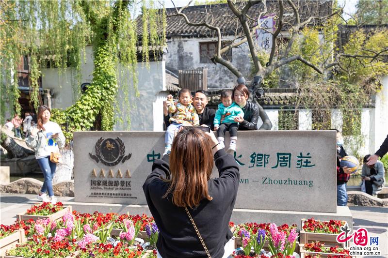 清明小長(zhǎng)假前兩日,周莊景區(qū)迎來(lái)一批批尋春而來(lái)的游客,漫步古鎮(zhèn)覓春韻,踏青田園賞花海。