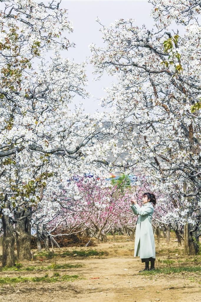 什川梨園觀賞花正當(dāng)時(shí)。首席記者 田蹊 攝