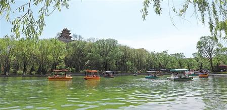 5月1日,游客在平?jīng)鍪辛珗@泛舟,享受假日美好時(shí)光。新甘肅·甘肅日?qǐng)?bào)通訊員 吳希會(huì)