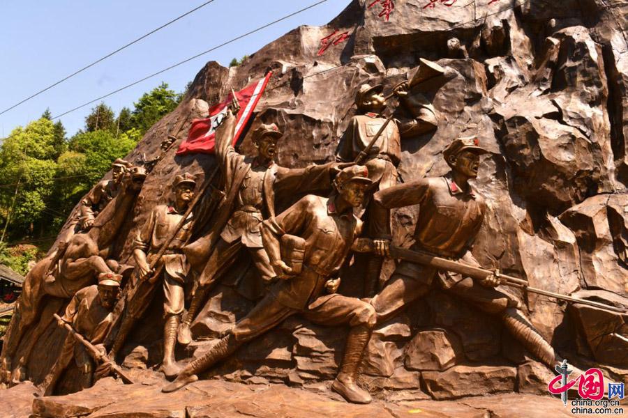 如今,這條紅色旅游線路是前來雪峰山旅游的必走之地。旅客在陳列室里閱讀紅二、六軍團經(jīng)過之情形;在紅軍亭,旅客仿佛看到聽到紅軍父母送子、妻子送丈夫的3000溆浦兒女參加紅軍的感人場面;在“勝利的號角”前,旅客紛紛拍照,表達一定在新的歷史進程中作出新的貢獻;在“紅軍長征”群雕前,小孩子們最感興趣,在這里敬禮,在這里發(fā)誓,長大后一定弘揚紅軍長征精神……