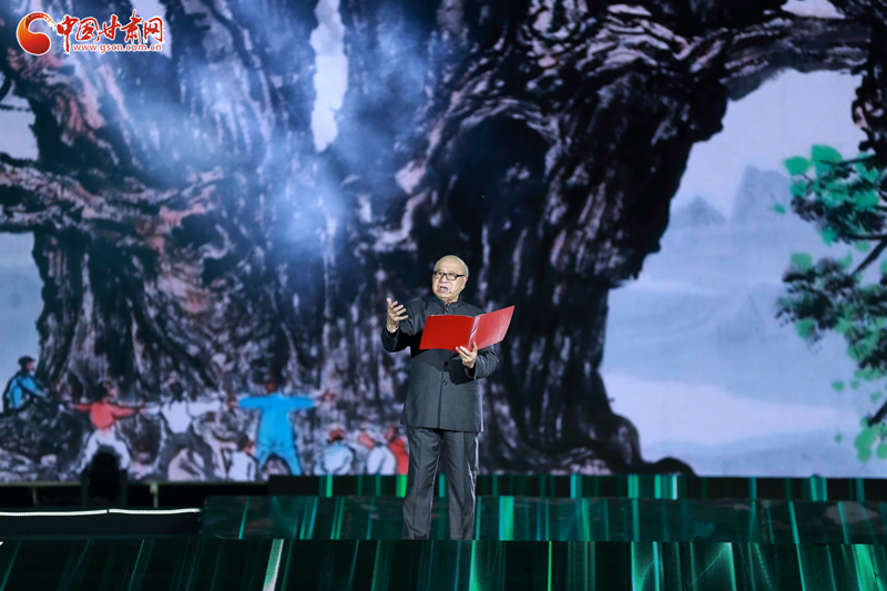 開(kāi)幕式之后的“水墨關(guān)山·槐蔭天下”晚會(huì),以“黃·紅·綠”三色歷史篇章新理念,展現(xiàn)平?jīng)鰷嫔>拮兊臍v史發(fā)展新格局。晚會(huì)以童謠《大槐樹(shù)謠》開(kāi)場(chǎng),展現(xiàn)了屹立于崇信山坳中的大槐樹(shù),歷經(jīng)3200歲風(fēng)雨,矗立成為民族精神的象征。非遺表演唱《弦子腔》+《崇信民歌》展現(xiàn)了崇信人民延續(xù)農(nóng)業(yè)生態(tài)精神,演繹對(duì)真善美的追求。還有書(shū)畫(huà)頻道的書(shū)畫(huà)家們現(xiàn)場(chǎng)通力合作,激情創(chuàng)作,專門為崇信人民創(chuàng)作了兩幅丈二畫(huà)作——《雄峙千秋》《公劉與崇信》,為本場(chǎng)晚會(huì)添色添彩。