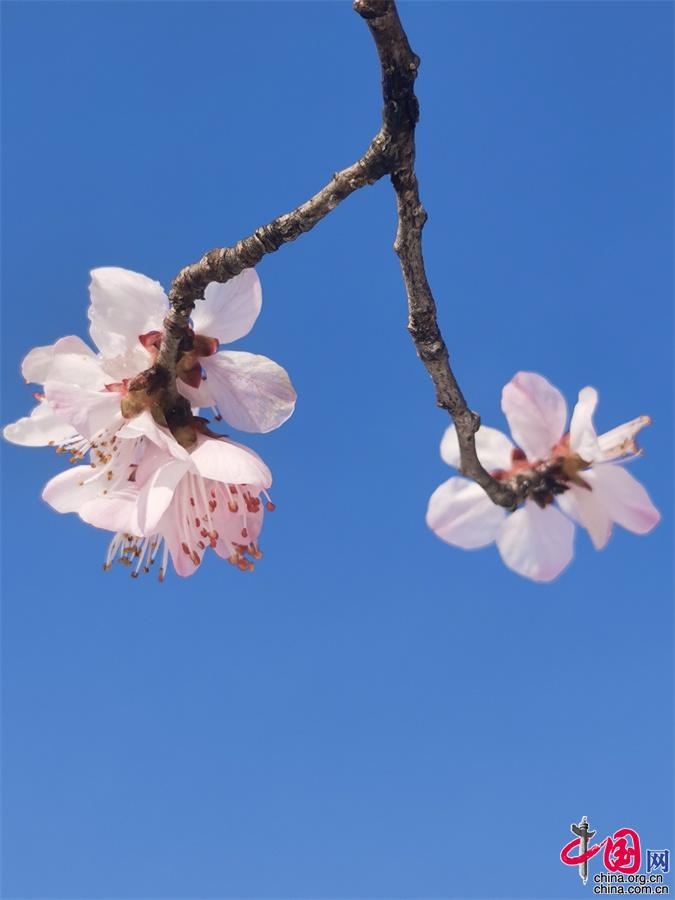敦煌鳴沙山下李廣杏花競(jìng)相開(kāi)放 美如畫(huà)卷 敦煌鳴沙山下李廣杏花競(jìng)相開(kāi)放 美如畫(huà)卷