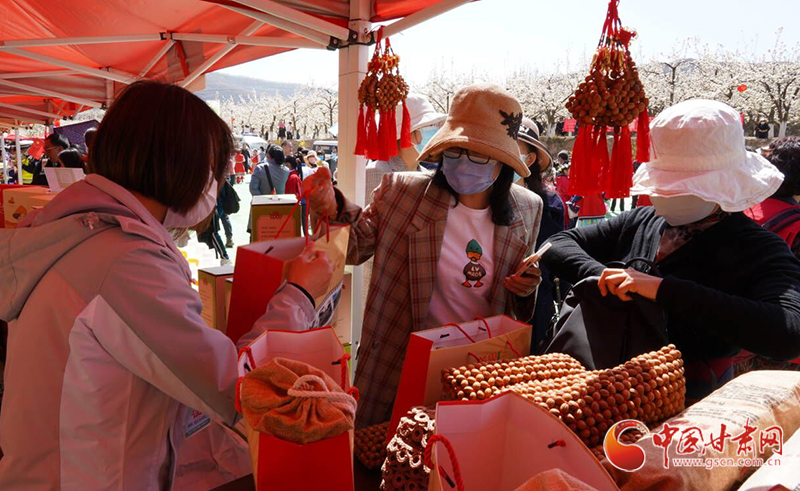 節(jié)會期間,靜寧縣還舉辦了“歸雁工程”招商推介會、梨園健身跑、漢服秀、青年聯誼交友會、戲曲擂臺賽、書畫攝影展、各類民俗表演等,為游客帶來一系列精彩紛呈的旅游體驗。同時展銷的山毛桃手工編織品也吸引了大批游客前來購買。