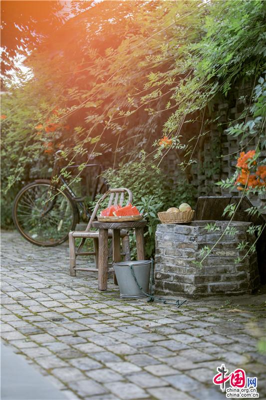 一縷陽光從藤蔓間落下,微風激醒了夏日的小院、水井、西瓜、竹椅......自然與肌理糅合陶然入夏。香村的一切,無一不村野,無一不夏天。