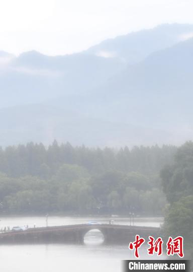 持續(xù)高溫天氣后,杭州終于迎來(lái)降雨,久違的大雨讓西湖景點(diǎn)和群山在雨水和云霧中呈現(xiàn),朦朧的景致如一幅山水畫一樣,引游人觀賞。
