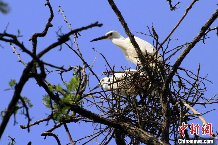 圖為白鷺在樹(shù)上棲息。 王曉新 攝