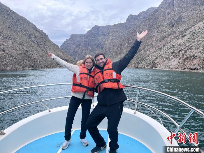 圖為高佑思和露露在龍羊峽乘船。李江寧 攝