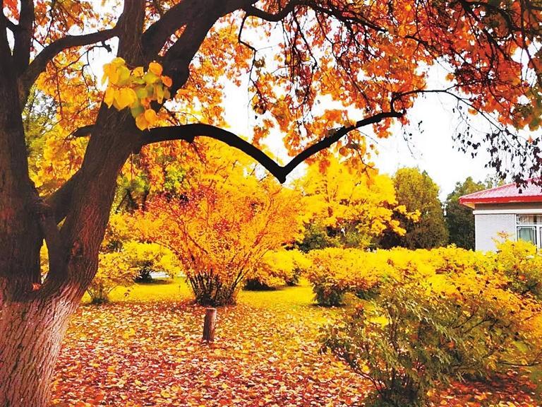 微風(fēng)輕拂,嬌黃的樹葉紛紛飄落,陽光透過葉片滲出幾分清朗,這是專屬秋的浪漫。隨便鋪開畫紙,蘸取一點(diǎn)點(diǎn)秋色,藍(lán)天、紅墻、金葉……都是最美的色調(diào)。古樸靜雅的校園彌漫著秋思,斑駁的陽光灑在圖書館的墻上,在濃濃的書卷氣中把農(nóng)歷十月寫進(jìn)秋的詩行,有思念、有沉淀、有墨香……蘭州“醉”美的大學(xué)校園,每一片落葉都是美的化身,綿延了時(shí)光,溫情了步履……