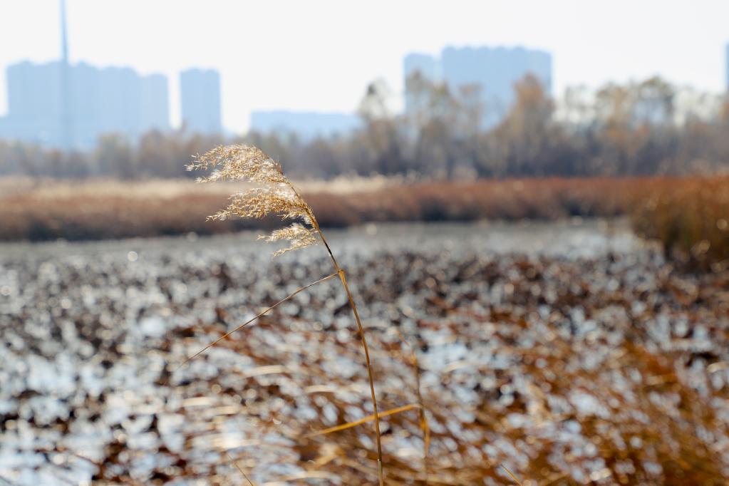 立冬時(shí)節(jié),登上哈爾濱松浦大橋,在下橋口順臺(tái)階而下,映入眼簾的是大片金黃色的蘆葦蕩,白色蘆花點(diǎn)綴其中迎風(fēng)招展,透過(guò)澄澈的水面依稀可見(jiàn)水草和水藻。在位于哈爾濱市松花江北面的阿勒錦島國(guó)家濕地公園,不少市民來(lái)這里徒步、騎行、健身,公園每年接待游客量超40萬(wàn)人次。