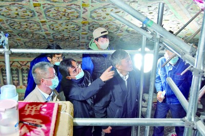 “我們有厚衣服,要不您穿著點(diǎn)?”壁畫保護(hù)修復(fù)技師柴宗香關(guān)心地問(wèn)記者。